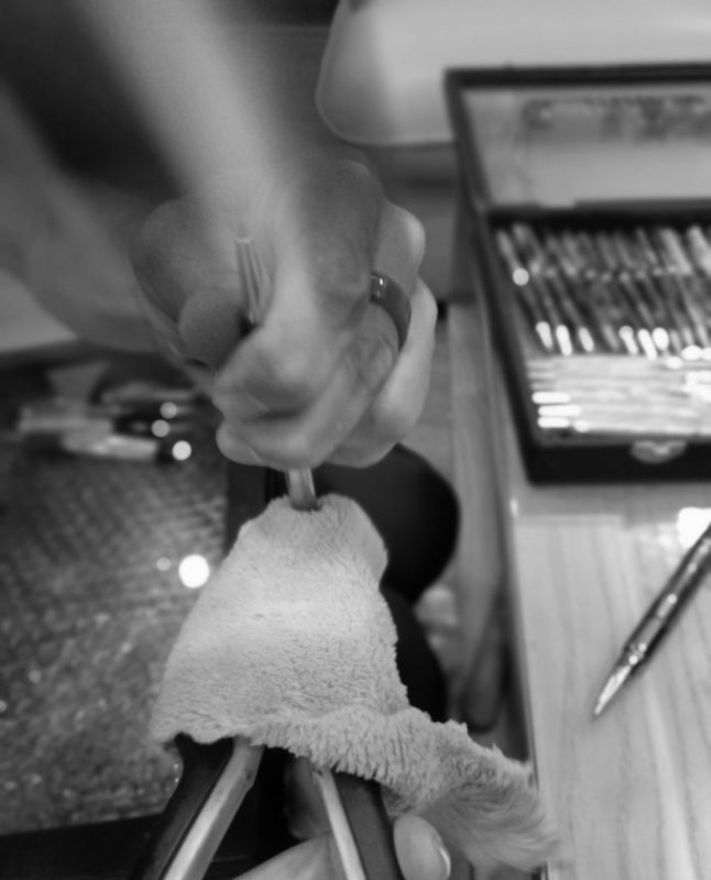 After the shell has been shaped on the accessory, let it dry outside of normal temperature and the grafting environment, make sure it is clean and free of dust from adhering to the product. Artists begin to grind the pipes under water with fine sandpaper, this is the longest stage because this is the most important step in determining the quality of the product.